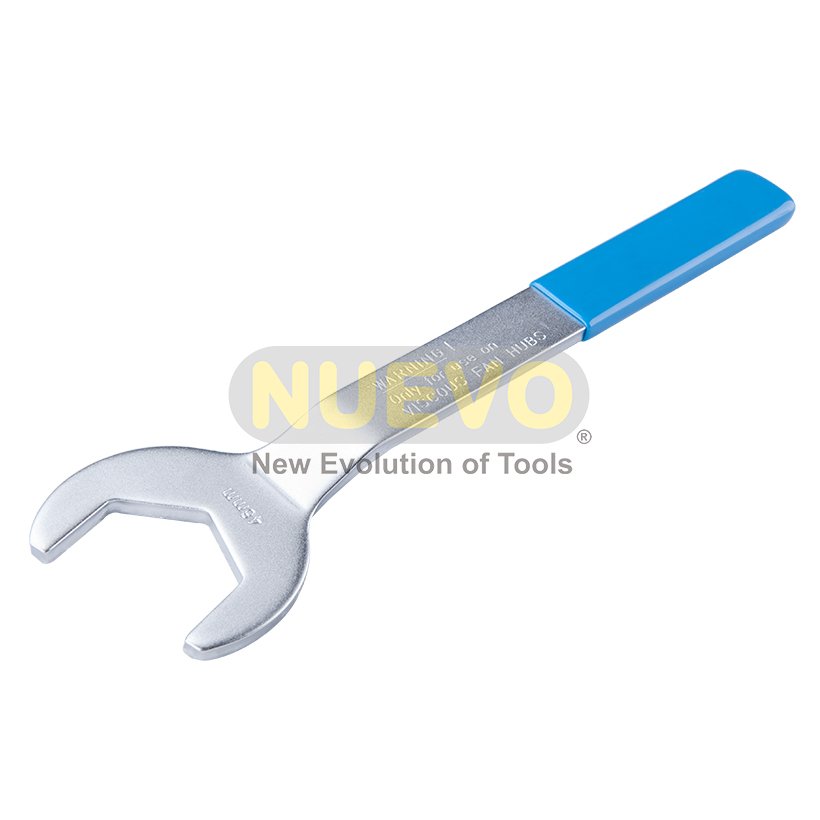 Introducing the Viscous Fan Hub Spanners from Nuevo-Auto-Repair-Tools, specifically designed for the removal of thermo and viscous fan hubs, these spanners feature a cranked handle for effortless access, making them ideal for tight spaces and complex automotive repairs. Crafted from durable carbon steel with a PVC-coated handle, these spanners offer a secure grip and long-lasting performance. The chrome-plated finish and distinctive blue handle enhance durability. For removal of thermo, viscous fan hubs, cranked for easy access. Size: 46mm. Material: carbon steel and PVC coating handle. Finish: chrome plated and blue color handle.